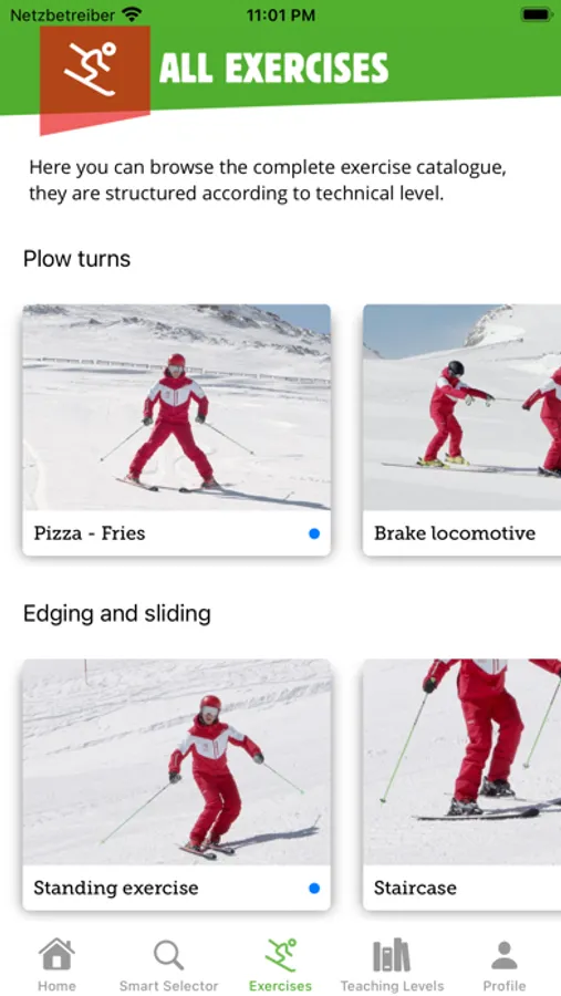 We offer around 170 exercises, available at any time on your mobile phone, even without an internet connection. With a description, the aim of the exercise and a video, teaching snow sports becomes child's play.