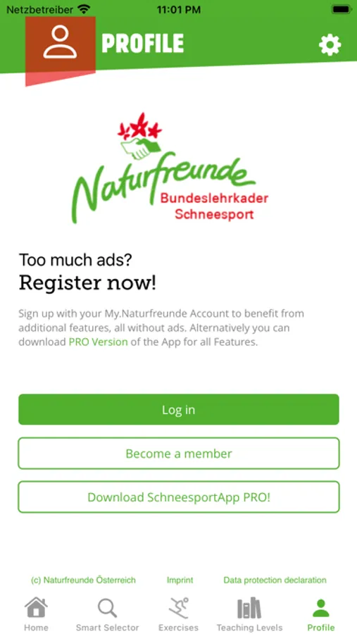 Naturfreunde members can log in with their my.naturfreunde.at account and benefit from an ad-free version. If snow sports training has already been completed, the full range of exercises is available.