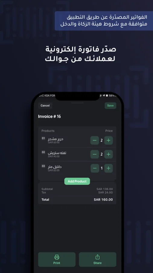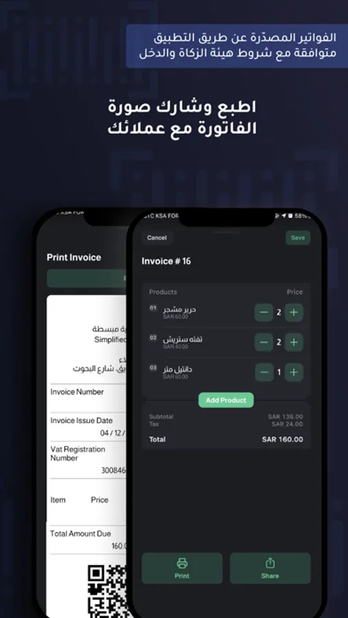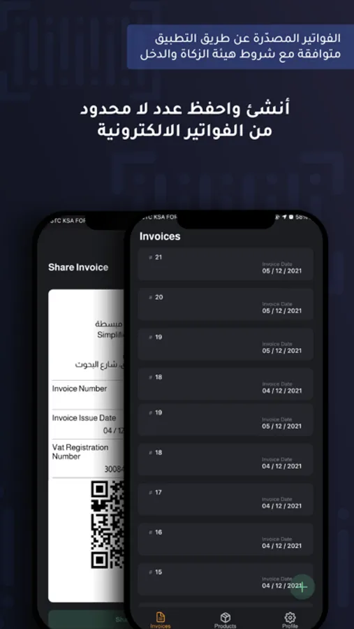 Export electronic invoices that comply with the regulations of the Zakat and Income Authority.