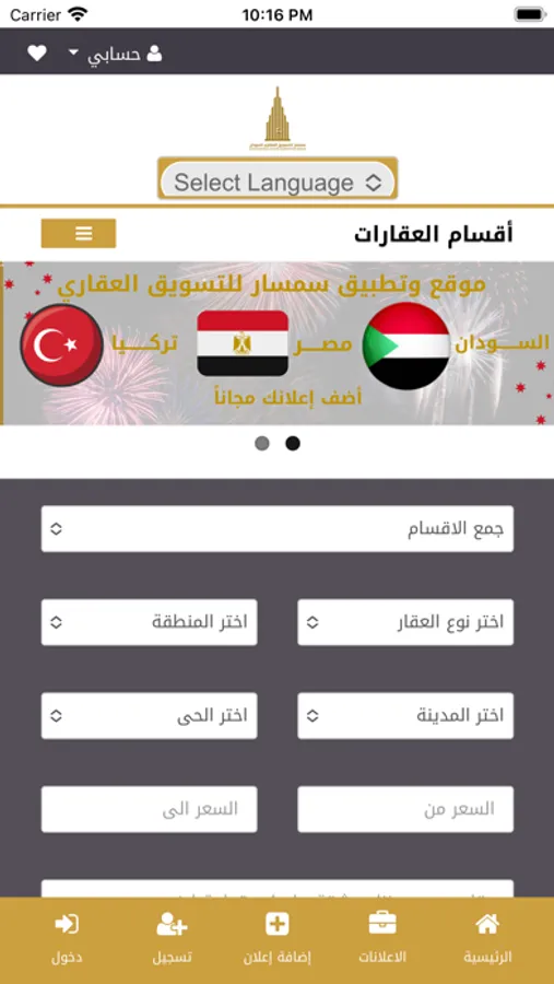 تطبيق وموقع سمسار عبارة عن منصة لعرض إعلانات العقارات في السودان
