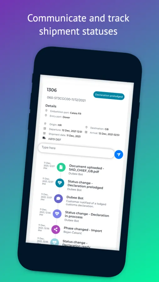 - Communicate with any of the participants in the shipment (haulier, carrier, customs agent, importer, exporter...)