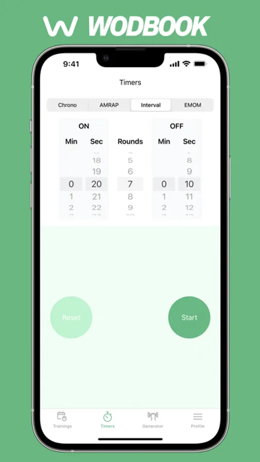 MyWodbook also contains all the types of timers you’ll use at Crossfit. From the classic chronometer, a countdown timer for AMRAP workouts, EMOM (customizable to allow more or less than a minute) and Interval timer for Tabata (it is also customizable). The timers include a full screen option to see the timer from the distance which switches the color in the interval timer to see better the “active” and “rest” time.