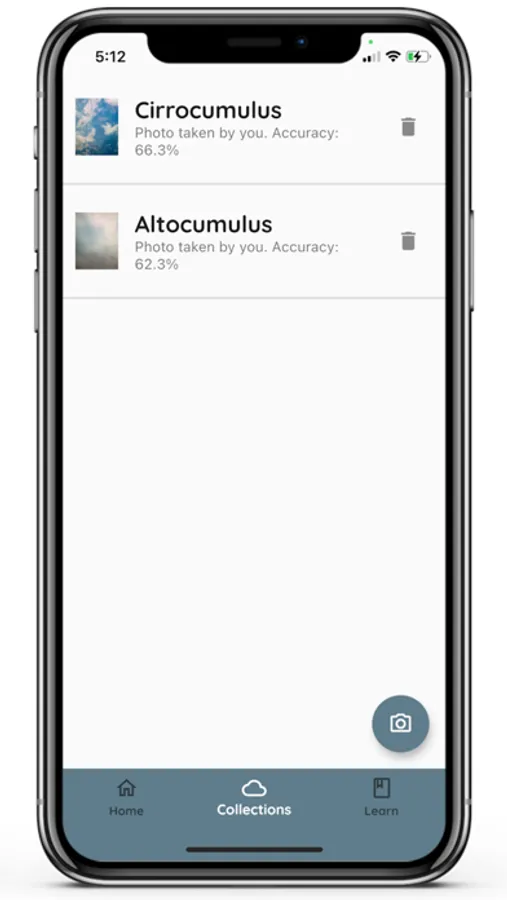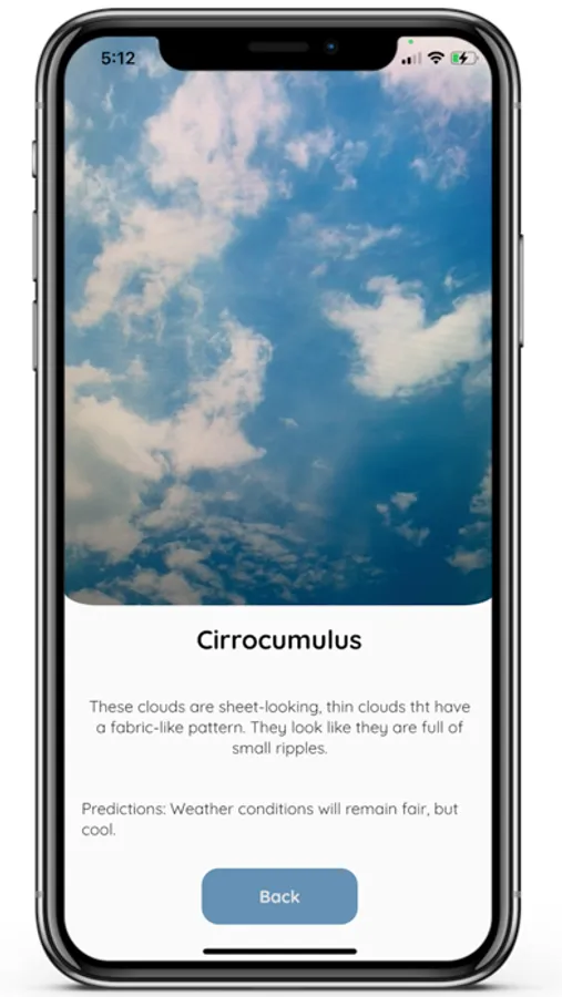 - A cloud scanner that makes use of the device's camera and machine learning to output the cloud type.