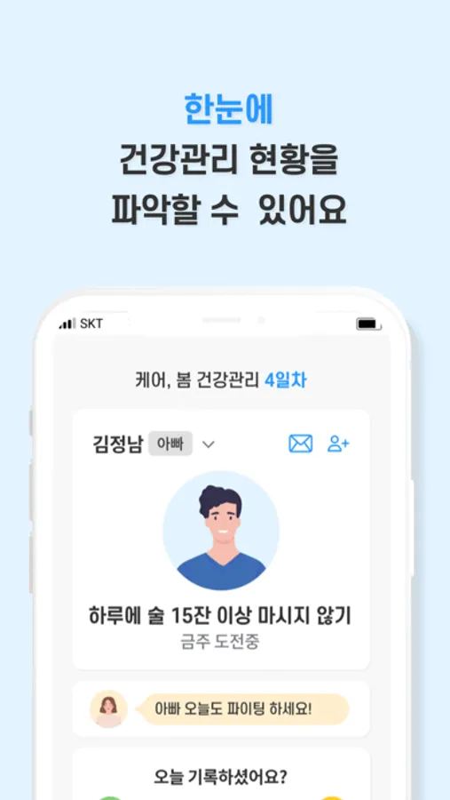 연결만 되어있다면 나 뿐만아니라 부모님이 잊은 약은 없는지 살펴볼 수 있어요:)