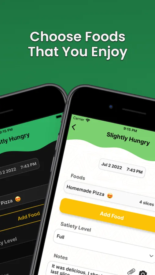 From hungry to stuffed, track how your meals make you feel, quickly discovering a better balance.