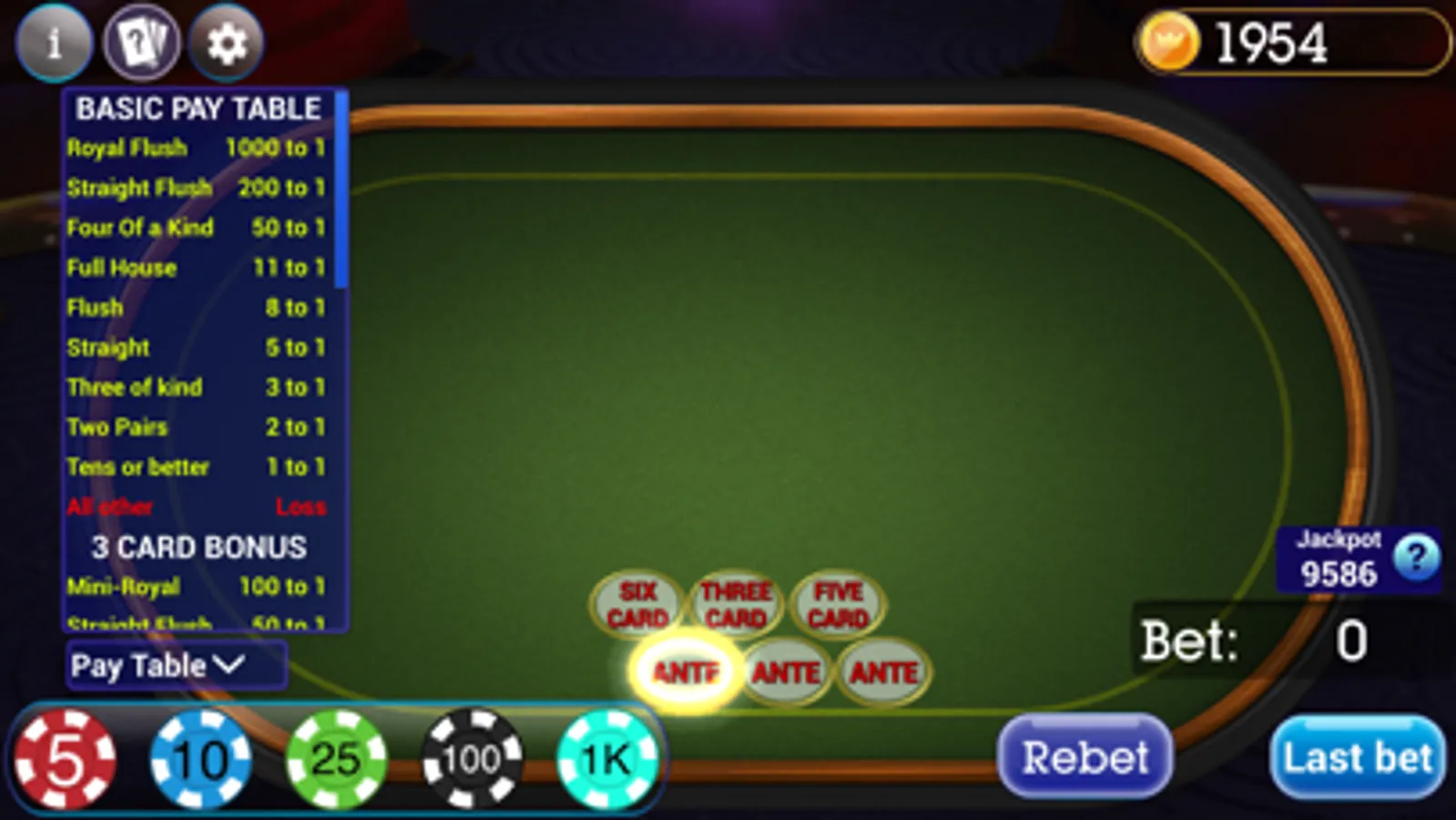 This app contains 18 different Poker table games (more will come soon) for you to play, all of these Poker games are free, the chip is also free, a perfect place to practice Poker games: