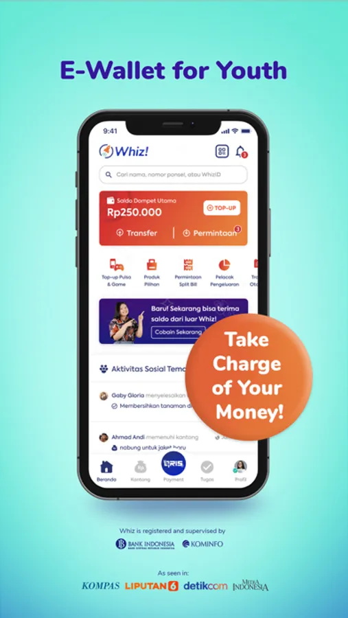 Whiz Platform (App) is fully owned and managed by Whiz Group and its Affiliates. Payment features in Whiz App (Electronic Money, Fund Transfer, QRIS) are provided by: