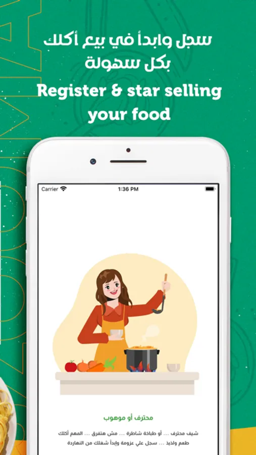 سجل بياناتك وارفع صورة الشهادة الصحية والبطاقة وانضم لشيفات عزومة.
