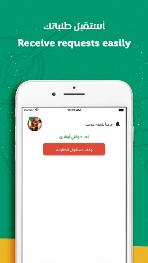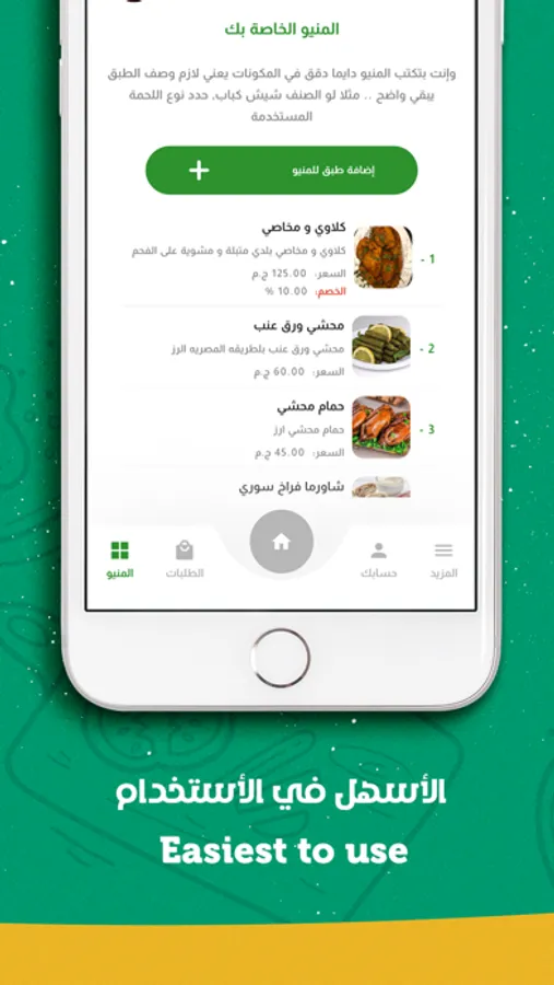 مهما كان نوع أكلك سواء كان مأكولات شرقية أو مأكولات إيطالية أو أكل صيني أو مشويات أو مخبوزات أو سوشى أو أكل فلاحي و فطير مشلتت أو طواجن و محاشي أو حلويات هتقدر تقدمة على تطبيق عزومة شيف. إختار نوع الأكل اللي تفضل تشتغل فيه من أكثر من 40 صنف من اصناف الاكل. حضر المنيو بتاعتك واختار المنطقة اللي تقدر توصل ليها وحدد وقت الشغل بنفسك و استعد لاستقبال الطلبات. تطبيق عزومة شيف به قسم خاص للحفلات والعزومات والمناسبات والولائم.