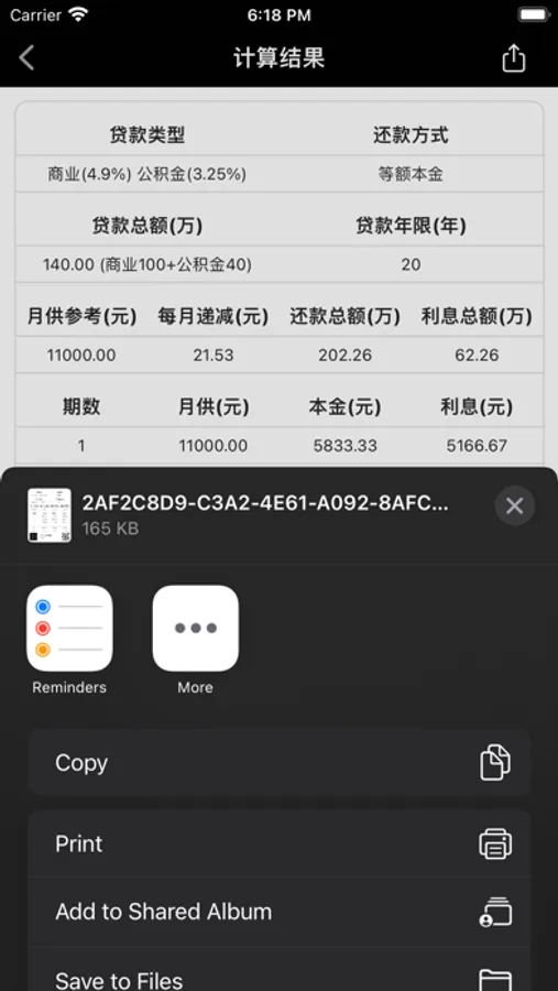 4. 可分享房贷计算,贷款计算结果到微信,微信朋友圈,抖音,快手等APP