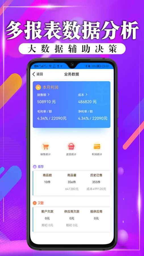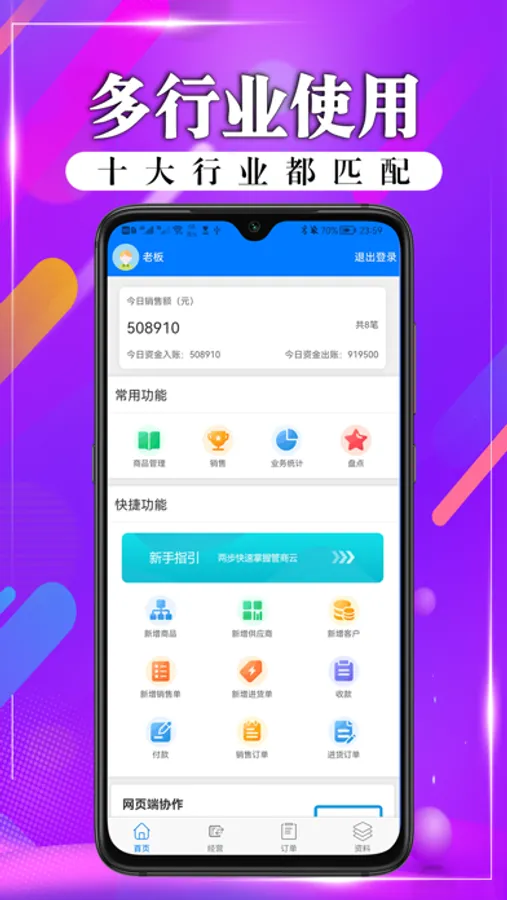 管商云进销存PC端、平板端、手机端都可以便捷访问,满足了商户移动化办公、异地办公的需要,是装在口袋里的生意管家!