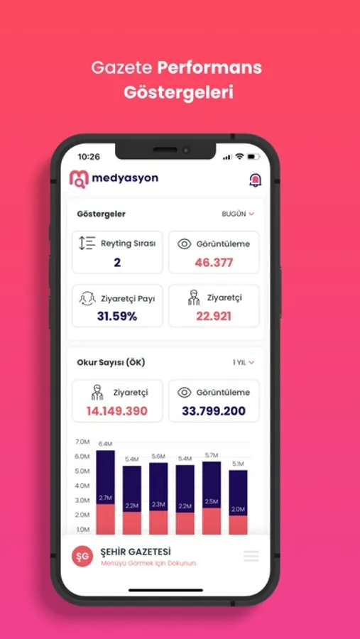 Medyasyon her gün milyonlarca veriyi işleyerek ziyaretçi sayılarını, okuyucu beğenilerini ve haber istatistiklerini en ince ayrıntısına kadar sizin için ölçer ve analiz eder. Sisteme dahil tüm haber sitelerinde haber başlıkları ve ziyaretçi sayılarını takip ederek, günlük, haftalık ve aylık raporlama yapar. Bu sayede haber siteleri; okur sayıları, en çok okunan haberler, en etkin paylaşımlar konusunda geniş bir dataya sahip olur…