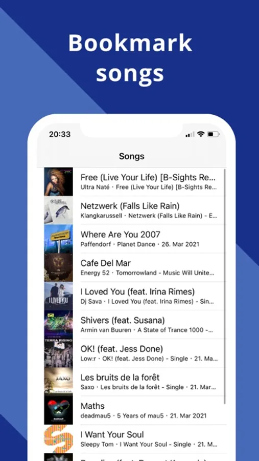 • Bookmark your favorite songs right from the music stream
