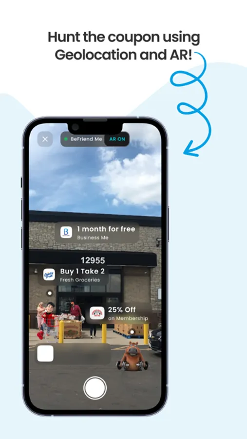 AR HUNT: The coupons are virtual and can only be visible through using the AR functionality of the mobile device. Once a coupon is available in the app, a user can begin the hunt. A detailed direction to the precise location of the coupon is provided to the user and AR is enabled once the hunter is near enough. This game-like hunt is bound to provide the BeFriend Me users ample excitement.