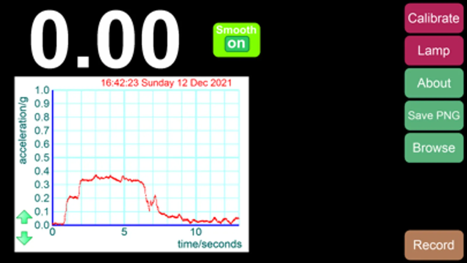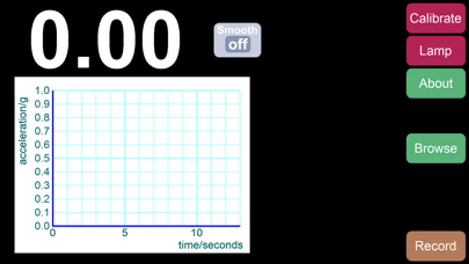 By default, unsmoothed data from your accelerometers is used. Tapping the 'Smooth' button continuously averages the last last ten readings. This helps to manage results.