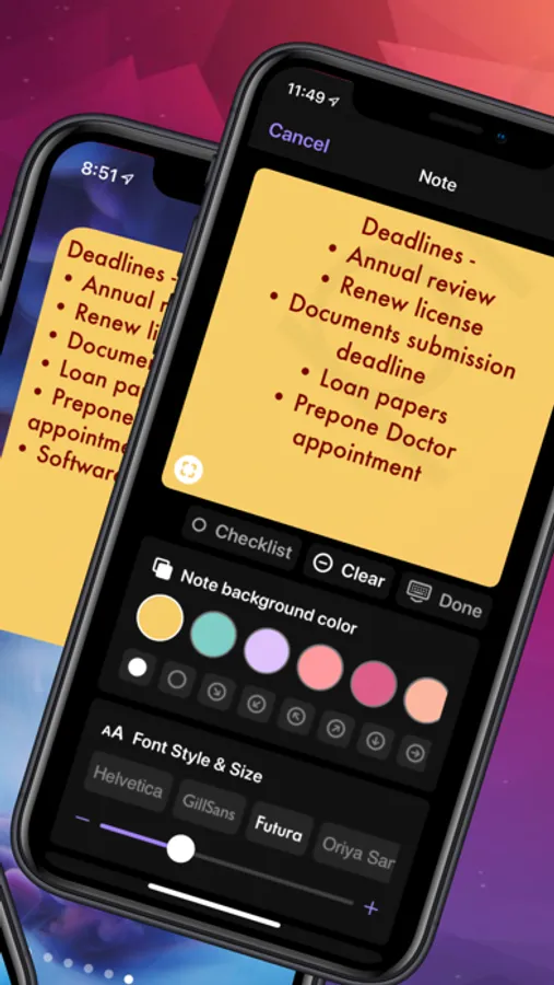 Fancy and fully accurate with iCloud sync Mini Notes is available on all your Apple devices. A Unique Sticky Note taking, To-Do List and quick Checkpoints making app that offers astonishingly beautiful Shade of Colours and Gradients.