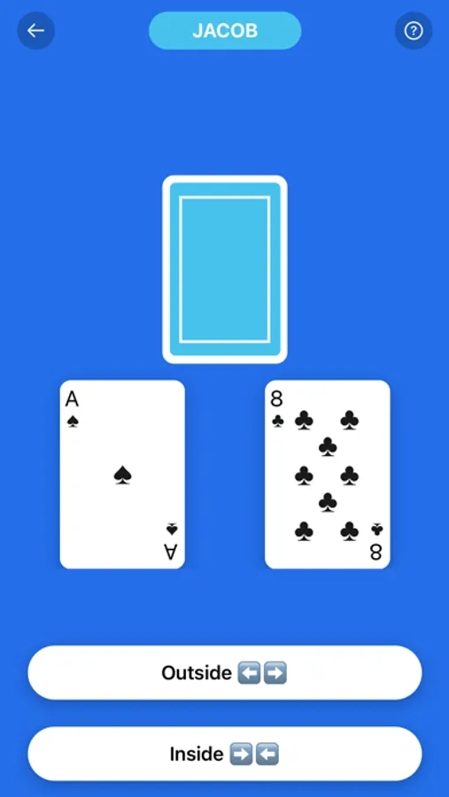Guess if the upcoming card is in-between the two previous cards’ values, or outside. For example, if your first two cards are four and nine, five would be “inside” while a Queen would be “outside“.