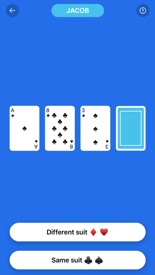 Guess if the suit of the upcoming card (for example, hearts or spades), is part of the previous drawn cards.