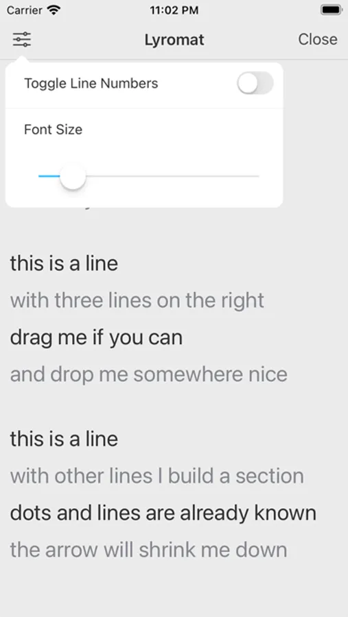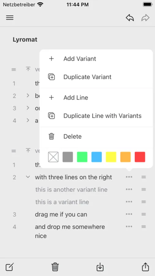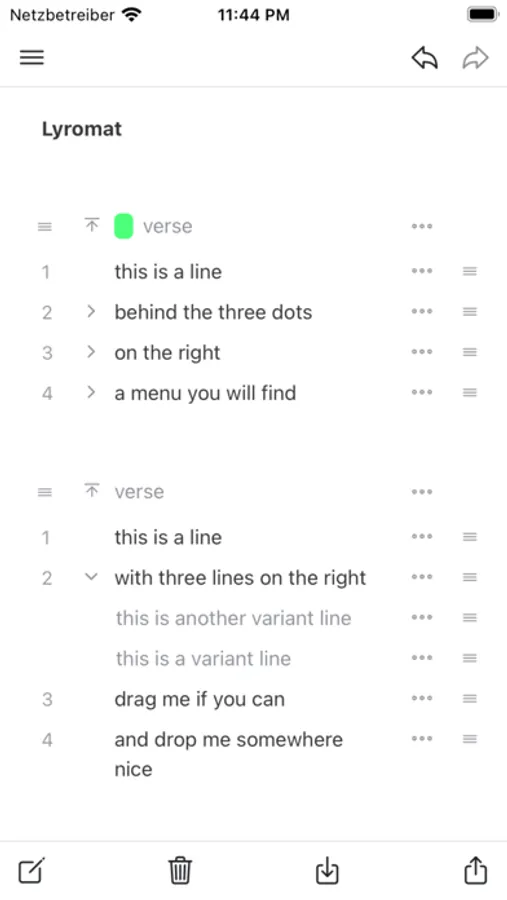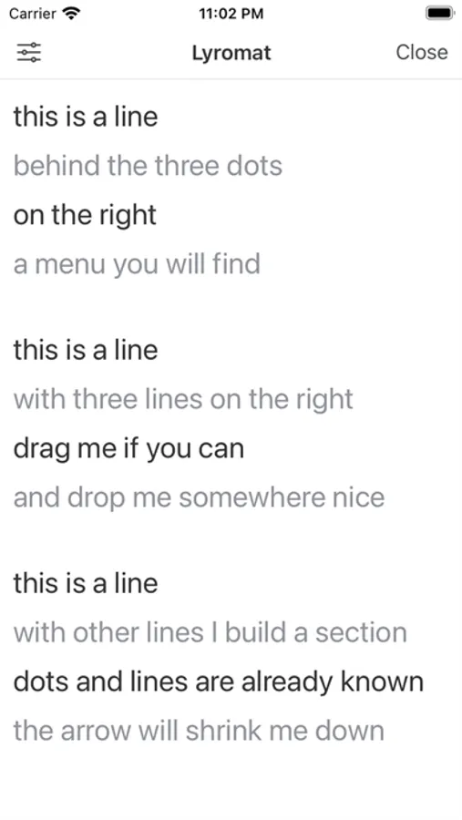 With Lyromat lines and text blocks can be organised, nested and grouped to pick the ones which work best.