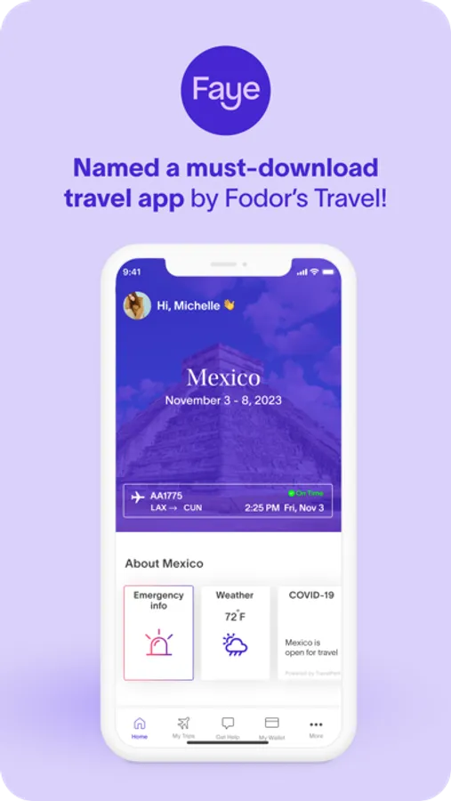 Voted a must-download travel app of 2022 by Fodor’s Travel, the Faye travel insurance app goes the distance to redefine how you’re looked after when you’re on the road, providing: