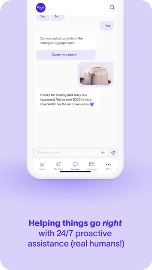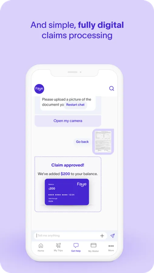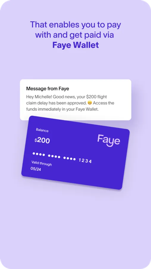 • The ability to pay, and get paid, for common trip inconveniences and claims via Faye Wallet, our secure digital payments card