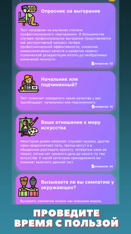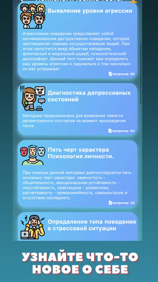 Ответьте на вопросы тестов по разным жизненным ситуациям и получите рекомендации профессиональных психологов!