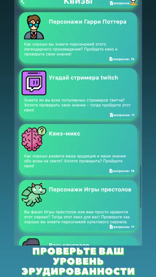 А еще в нашем приложении вы можете проверить уровень эрудированности и пройти викторины на разнообразные темы: так ли хорошо вы знаете обо всем вокруг?