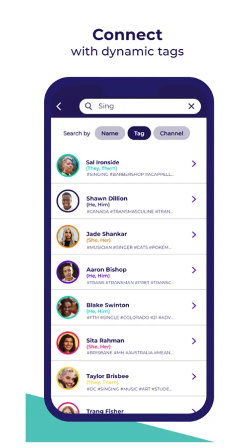 • Profile tags to help search for people with similar interests