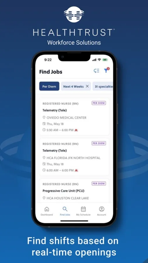 Go HWS Mobile has real-time visibility of open shifts, as well as contract jobs, at locations across HealthTrust’s network. It’s designed specifically for the flexibility you need to schedule jobs while managing your busy life.
