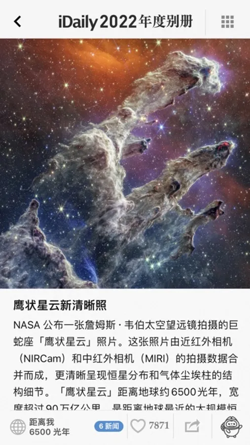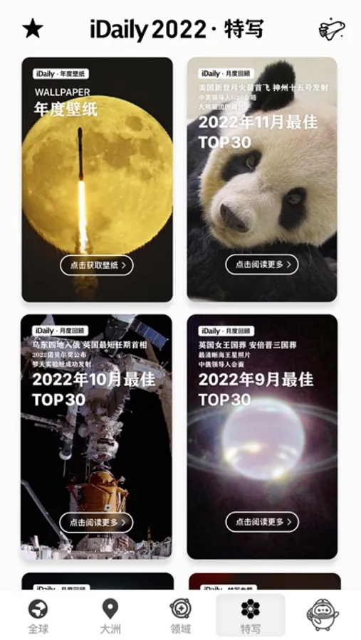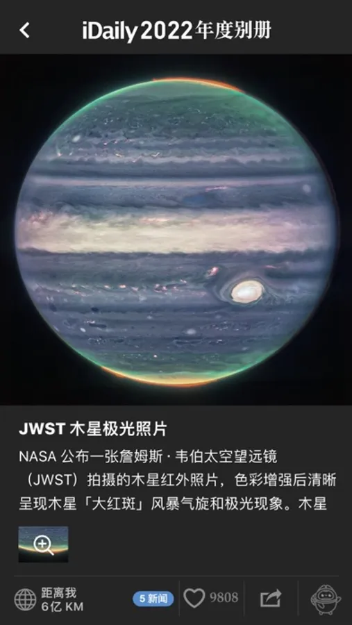 每一天,我们从全球超过 50000 张图片中选出10个最能够拓展视野、打动人心的视觉记录。一年 365 天,你所看到的「iDaily · 2022 年度别册」即是这 1500 万张图片中最出色的 5000 个画面,5000 个瞬间。