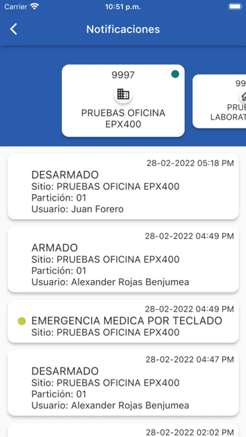 Control de horario de ingreso y salida del personal mediante las notificaciones de armado y desarmado.