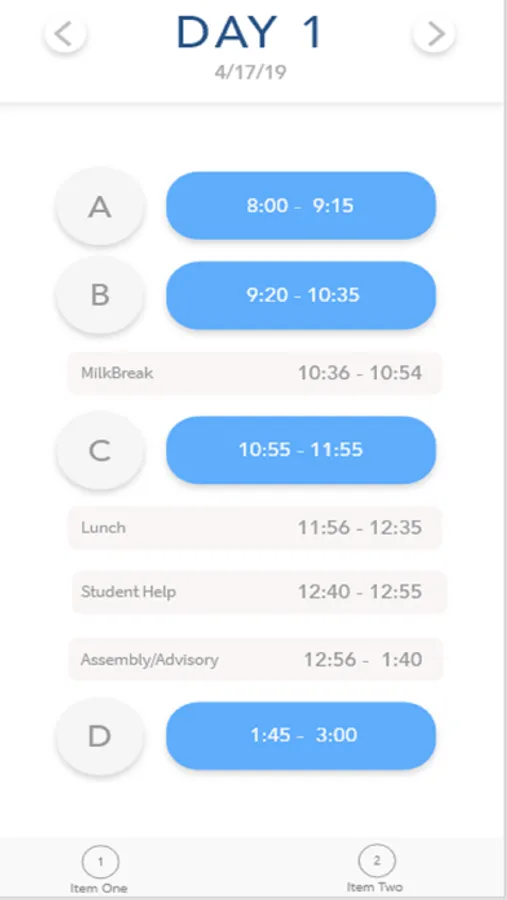 An app designed to reduce the confusion of LJCDS's seven-day cycle. There are two tabs: Schedule and Timer. Using these, students can quickly and conveniently pull up their schedule for the rest of the day and also check the end time of their current block.