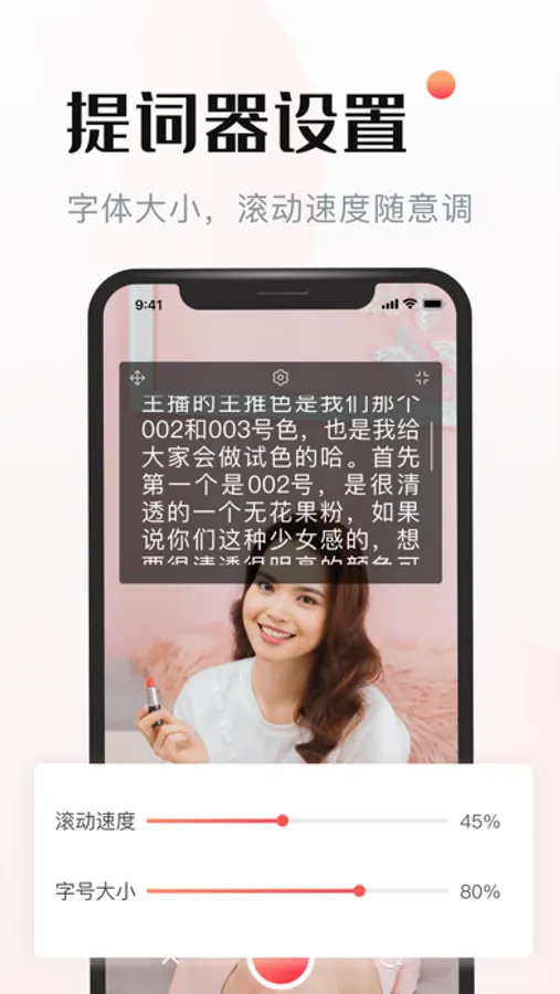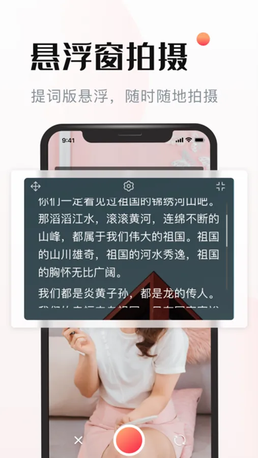 【录制模式】支持随时随地录制,悬浮提词智能拍;告别厚厚的台词剧本,不用费心的去记台词,让你从此告别忘词卡词。