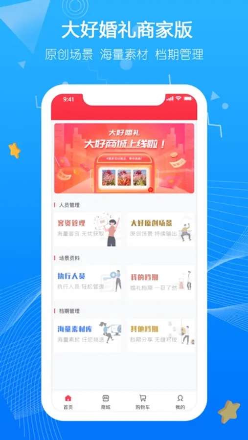 大好婚礼商家版是安徽省大好信息科技有限公司为婚礼企业、婚礼人等开发使用的综合一体化工具。