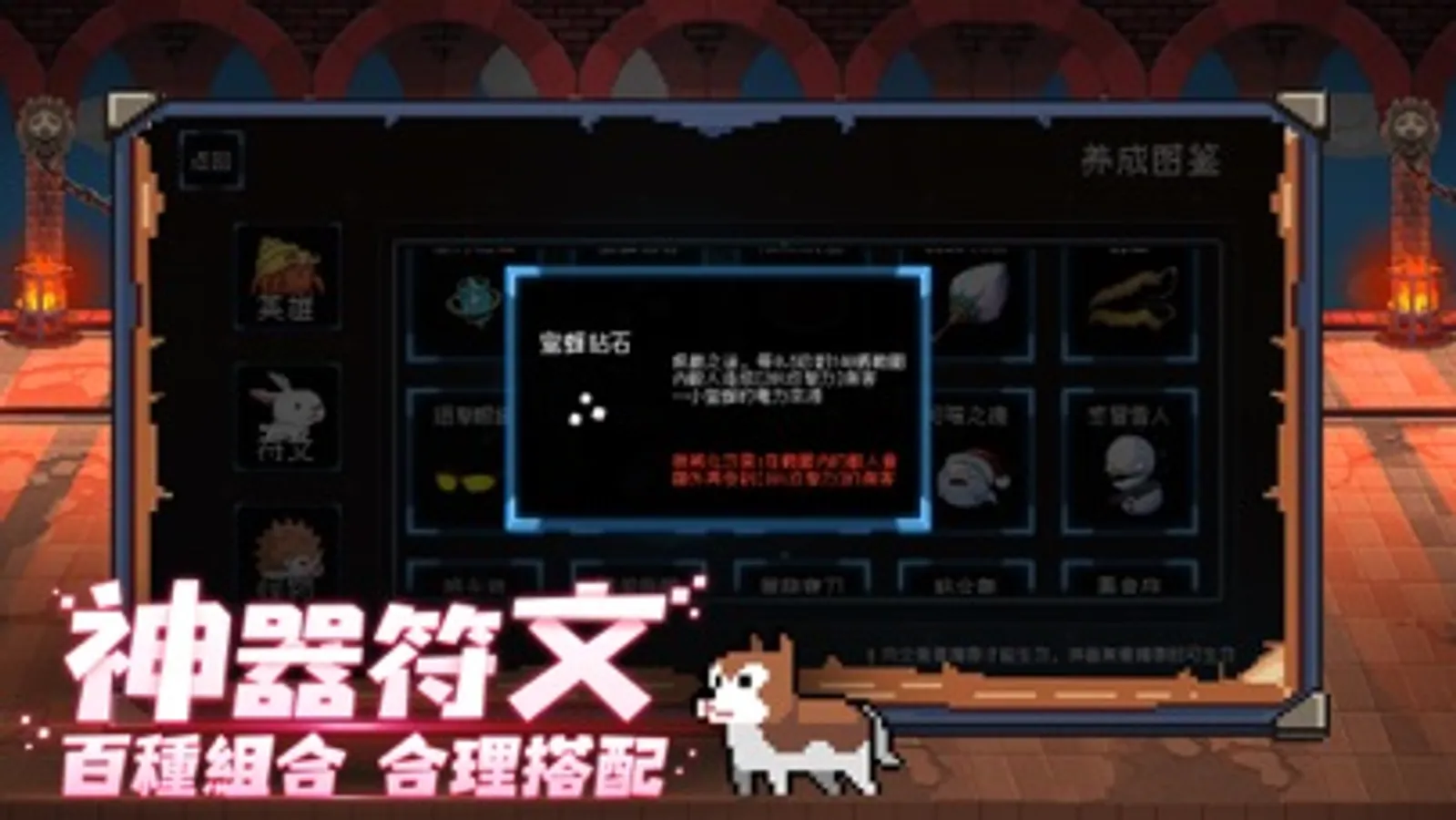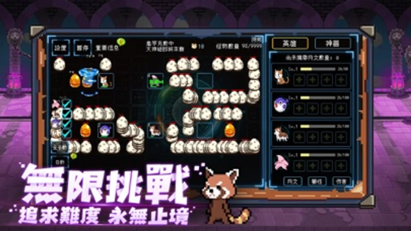 選擇不同的神器符文增強英雄屬性。不斷擊敗敵人!獲取碎片升級英雄,贏得最後的勝利!