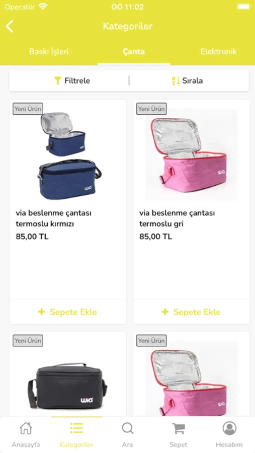 * Ürün kategorilerinde filtreleme yapabilirsiniz.