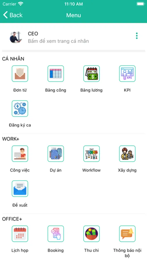 1. Phân hệ Quản lý công việc & hiệu suất WORK+: Tổ chức công việc, lập dự án, báo cáo tiến độ và làm việc mọi lúc mọi nơi