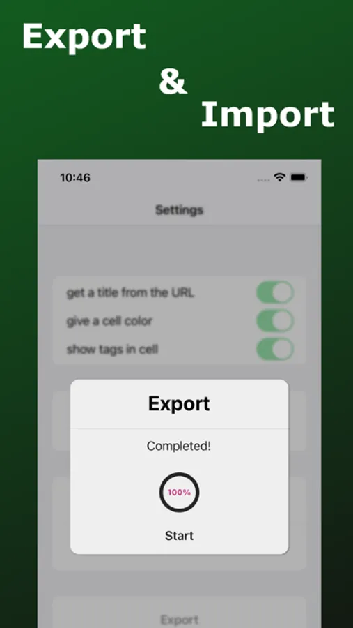 Save clip data as a file externally, and import clip data from other applications via the "Share" function.