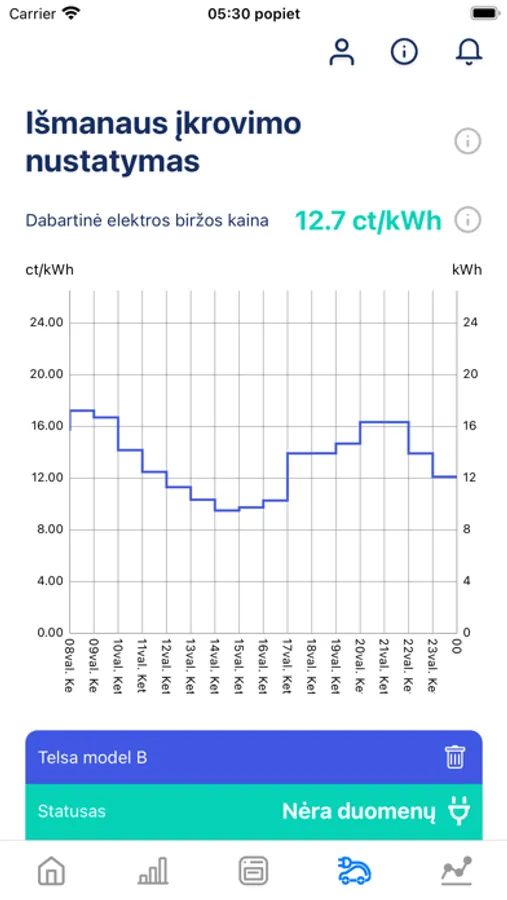 - Turint Ignitis biržos planą, dinamiškai įkrauti elektromobilį pigiausiomis biržoje valandomis.