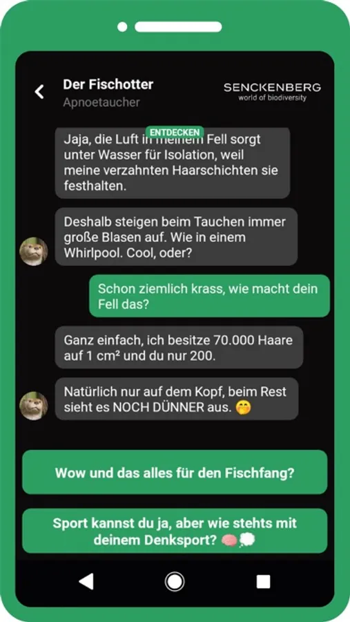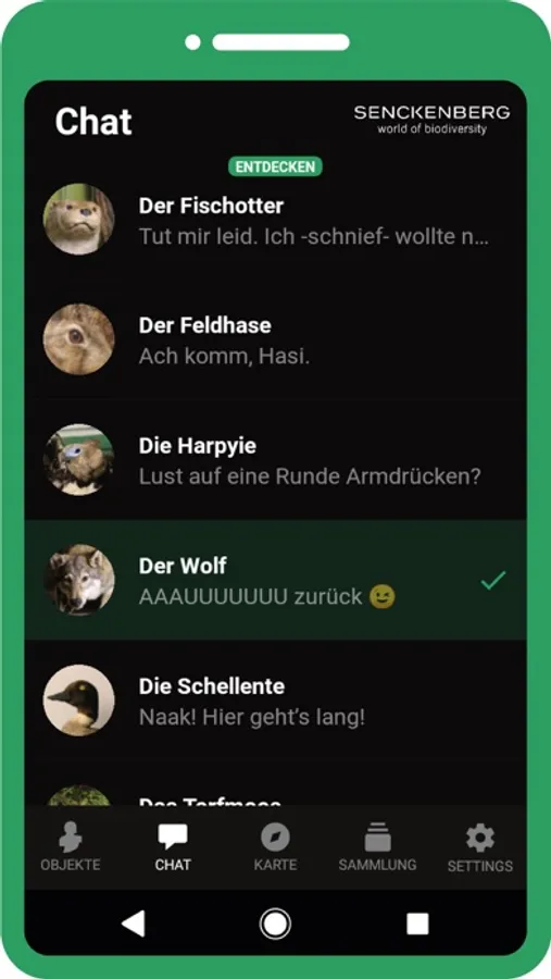 Die Museums-App "Mein Objekt - Senckenberg" ist Dein Begleiter bei der spielerischen Erkundung des Senckenberg Museum für Naturkunde Görlitz. Du kannst Objekte nach Deinen Interessen auswählen, mit ihnen chatten und sie im Museum besuchen. Manche Objekte sind witzig, andere launisch und wieder andere brauchen sogar Deine Hilfe. Wie sich die Gespräche entwickeln, hängt von Deinen Entscheidungen ab.