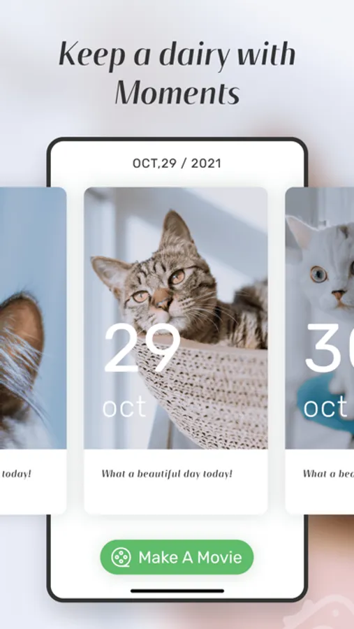 Moments - 1 Second Diary (Moments) is a video diary that help you record the best memories of your life everyday. You can capture the best moment of your every-day life for 1 second. And a few wonderful moments of one second will be turned into a short life movie with your creativity and our easy-to-use video editor. Even, you can share your beautiful memories with your families and friends. Love your life and share your joyful moments! Let's get started with Moments now! We are AD-free!