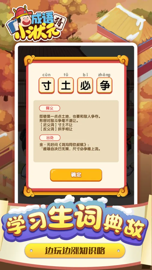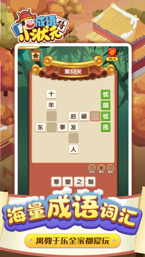 独特卡通国风,原创谜题,成语解释出处说明完整,寓教于乐。
