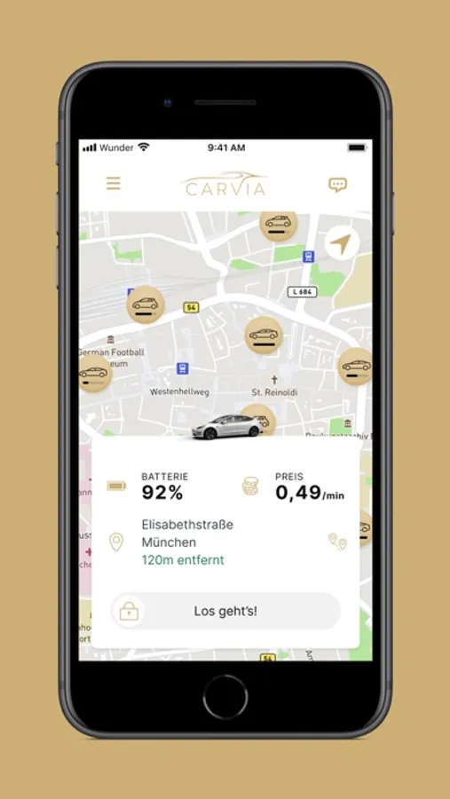 Simply download the CarVia app on your smartphone, register and wow... you have numerous fun cars ready to drive in Munich.