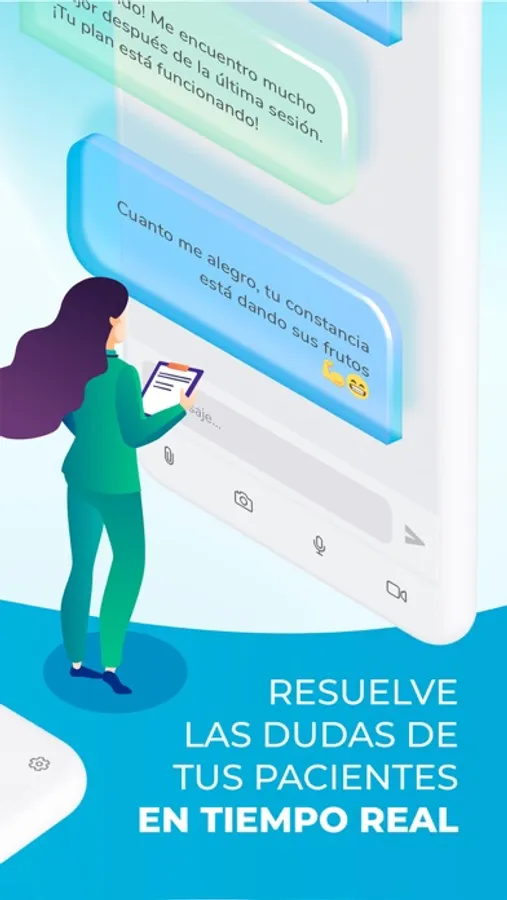 Resuelve las dudas de tus pacientes a través de notas de voz o en el chat a tiempo real.