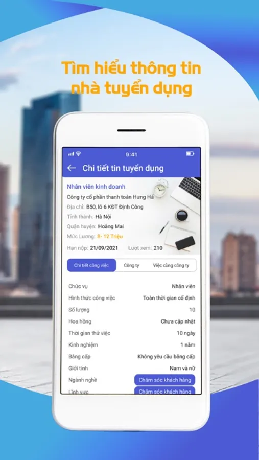 Ai cũng biết, để tìm việc nhanh mà thành công, người lao động luôn phải phát huy sự chủ động khi tìm kiếm nhà tuyển dụng. Nhưng với ứng dụng timviec365.vn, ứng viên không những có thể tìm thấy rất nhiều nhà tuyển dụng tiềm năng mà còn được trực tiếp các nhà tuyển dụng tìm đến, gửi tới bạn một lời mời trân trọng đến và thử sức đảm đương công việc tại công ty.