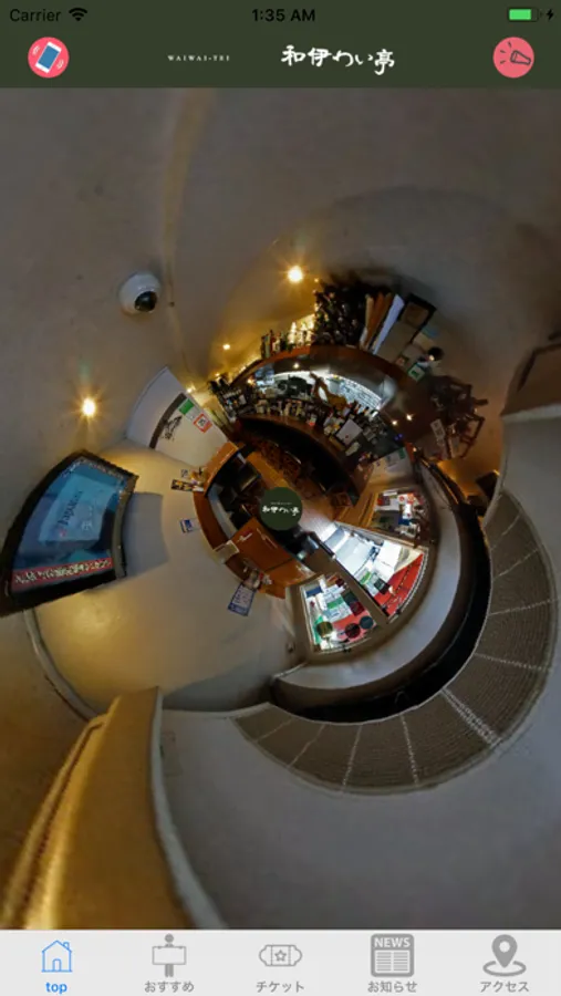 360度パノラマ画像でのお店の内観の閲覧や、お店へのアクセスなどの店舗情報の確認、またお得な情報などの最新のお知らせを確認することができるアプリケーションです。
