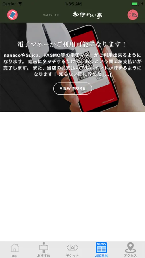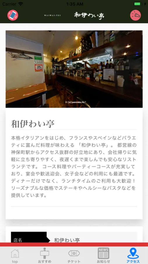 和伊わい亭アプリは、東京都千代田区西神田2-7-5にあるイタリアンダイニング「和伊わい亭」の公式アプリです。