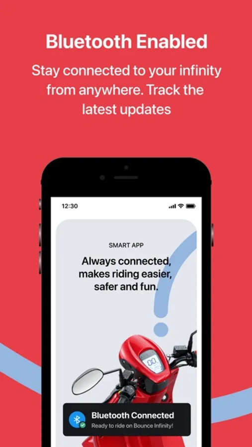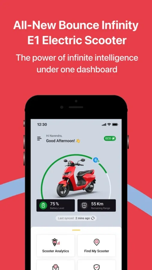 Your Bounce Infinity and the infinity app are a killer combo. Together, they offer a host of intelligent features that make riding electric a winning choice. Stay connected to your Bounce Infinity E1 wherever you are. Get real-time updates, track scooter analytics, locate swap stations, set geofence alerts, explore vehicle modes, anti-theft alerts, live tracking, battery charge status, and more.