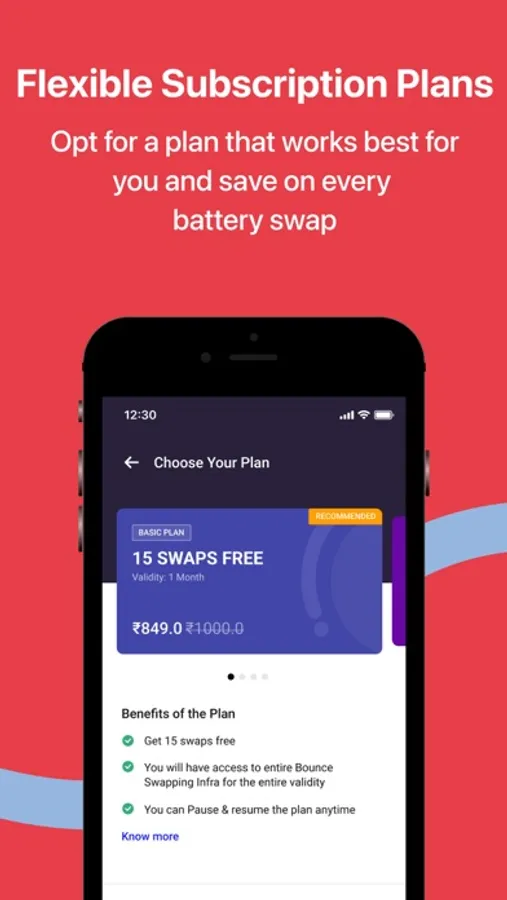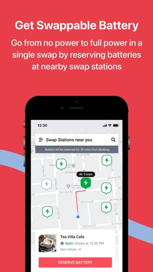 All Bounce swap stations are integrated into this app, which constantly tracks your electric scooter’s battery charge status. The app will alert you when your battery’s low, and all you’ll have to do is track the nearest swap station to swap. Or plug into your portable charger and track the charging remotely.