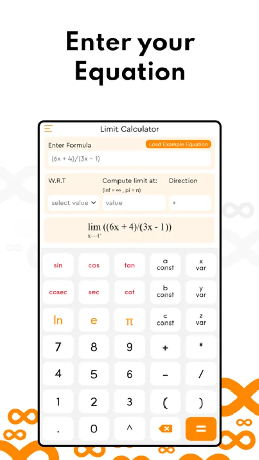 This operation provides a strong back support in resolving various calculus numericals. Make a use of this limit calculator app to perform a number of mathematical calculations within no time. This limit finder not only computes the boundaries but also displays Taylor series expansion of the given function.